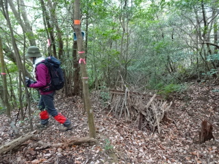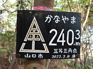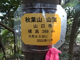 山口県弓道場P(9:02)~53分~金山(9:55~9:58)~42分~秋葉山分岐(10:40)~50分~