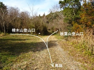 秋葉山登山口(13:03)~25分~馬庭(13:28)~24分~椎の木峠(13:52)~44分~弓道場P(14:36)