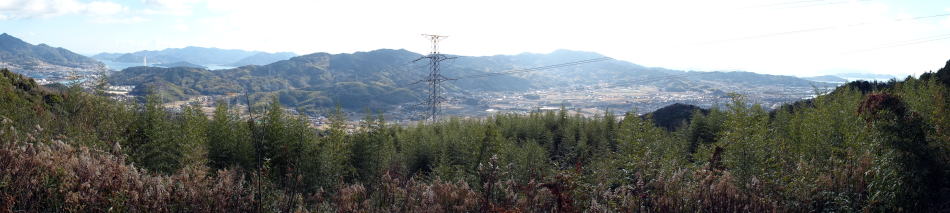熊毛郡平生町や熊毛郡田布施町の熊毛とは入江の入り込んだ土地という意味と、渡来人が住む土地という意味があります。石城山の版築土塁などの高度な土木技術や、その地形から熊毛の意味が頷けます。古代から中世まで赤子山の北は海で、南は入江が入り込んでいて、赤子山は熊毛半島の一部でした。当時柳井、平生、田布施は海で柳井水道(からと水道)と呼ばれていました。江戸時代に干拓が進み現在の地形になりました。赤子山から周辺を望み、目を閉じると古代から中世の景色が思い浮かびます。