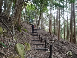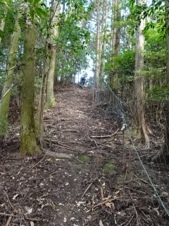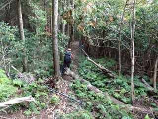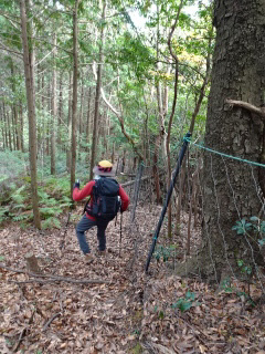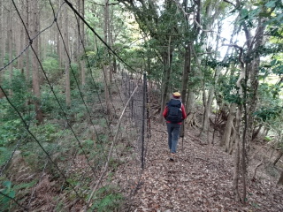尾根道は歩き安い。最初のピークを左に曲がり、次のピークを右の曲がると鹿ネットがある。鹿ネットに沿って登って行く。