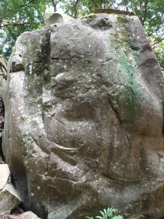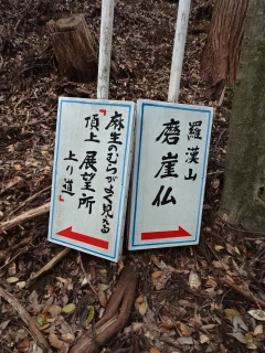 更に登って行くと磨崖仏と羅漢山展望所の分岐があり、そのすぐ右に磨崖仏がある。