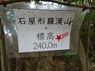 展望所の一番高い所には石屋形羅漢山の標識がある。石屋形羅漢山からは北北西の尾根を登って行く。登山道はないが