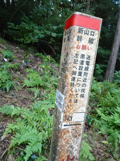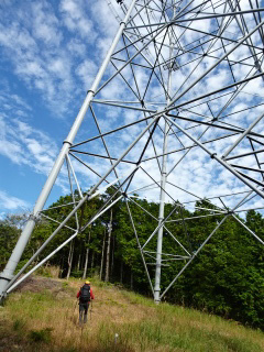 鞍部には中電標柱がある。地図を確認すると、ここからも下山出来そうだ。更に登って行くと鉄塔がある。鉄塔から登り返すと