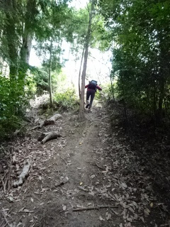 やがて鹿ネットから離れて登って行く。尾根を巡り登って行き、ピークを右に降って行く。登り返すと尾根に上がり再び前方を
