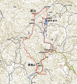 ピークを左に入って行くと三等三角点(点名:高山)のある高山に着く。