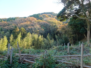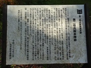 第二騎兵隊練兵場跡を通り、銅版の観世音菩薩像を眺めて、キャンプ場跡を通り北門に向かうと、左手に山に上がる道が