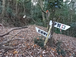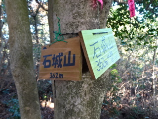 登って行くと高日神社に着く。ここが高日ヶ峰で石城山の標識が掛けてある。