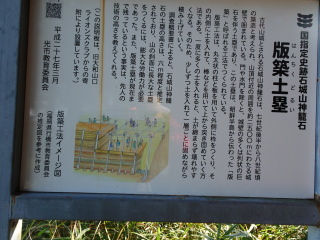 版築土塁の説明板がある。その先の北門跡からは星ヶ峰、キャンプ場跡へエスケープ出来る。更に神籠石の道を巡ると
