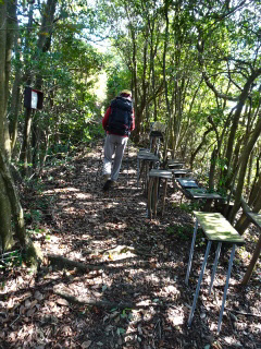 下松市来巻にある烏帽子岳は、北の農業公園からは、大きく分けると三本の登山道があります。東登山道コース、西登山道コース、西登山道林道コースです。更に西登山道コースはコースAとBに分かれて、多くのバリエーションで登られます。七年ぶりに下松市農業公園から西登山道経由で烏帽子岳へ登りました。登山道は藪で覆われて、蜘蛛の巣を払い、枝を切りながら登りました。烏帽子岳の山頂に登頂した後に、第二見晴台まで足を伸し、展望の良い第一見晴台で瀬戸内海を眺めながらランチにしました。鏡のような穏やかな内海の向こうには国東半島がくっきりと望め、すっかり秋の空になっていました。