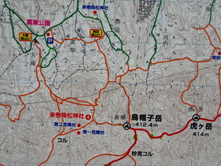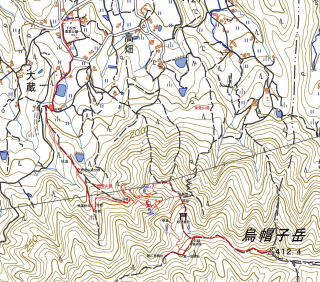 下松市農業公園(9:54)~24分~林道終点(10:18)~45分~妙見神社(11:03)~12分~烏帽子岳(11:15~11:28)