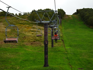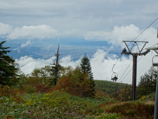 | かもしか展望台から降って行くと、リフト乗場に戻ってきた。米沢市を眺めながら空中散歩を楽しんだ。白布温泉は休みだったので 米沢市内の鷹山の湯で汗を流して、米沢ラーメンに舌鼓を打ち、昨日泊まった道の駅米沢にまたお世話になった。 |