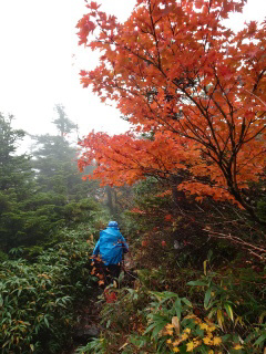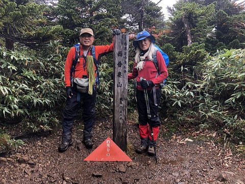 | 西吾妻山で写真を撮って頂き、早々に西吾妻小屋に向う。 |