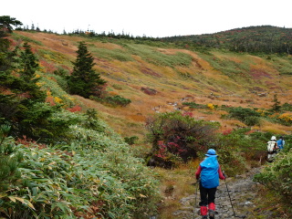 | 西吾妻山方面の一番の景色が待っていた。人形石分岐からかもしか展望台経由で北望台・リフト乗場に降りて行く。 | ||