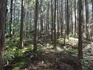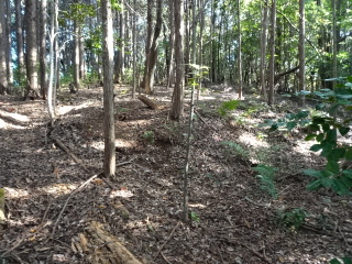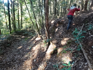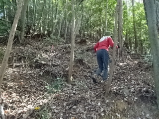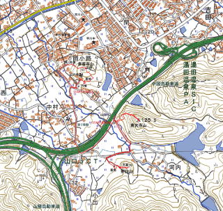 泉香寺山の山頂には泉香寺山城跡の標識と縄張図があり山城のようです。また麓の広沢寺には6世紀末から7世紀前半と思われる古墳があります。茶臼山も山城と言われていますが、山頂には江戸時代の古墓が二基ありました。東光寺山は駐車地点から取付きがあり、踏跡をたどると尾根に上がり明確な山道になりました。山頂には標石に囲まれた四等三角点(点名:河内)がありました。