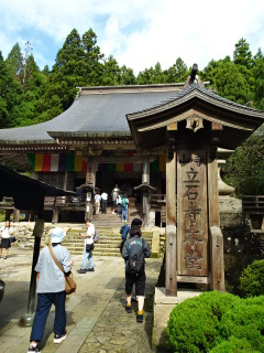 山形市に来たら是非立ち寄りたいと思っていた、芭蕉の「閑かさや岩にしみいる蝉の声」の俳句で有名な山寺を訪れました。山寺の正式名称は宝珠山立石寺で天台宗の古刹です。山寺は岩にしみいる閑かさとはほど遠く、多くの観光客で賑わっていました。石段の多さに「観光まで山登りだ」と相方。まあそう言わずに「芭蕉だんごも付けるから」と返す。