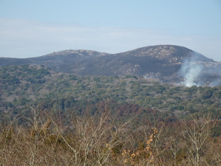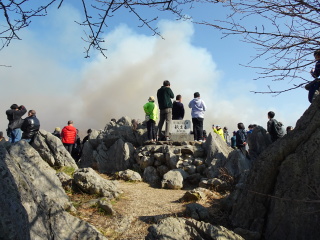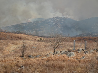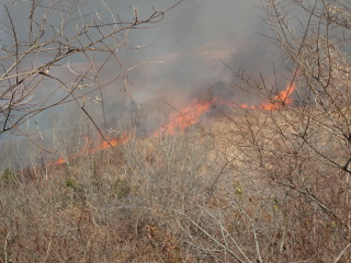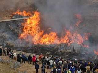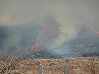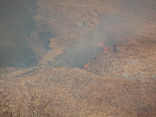 火切りの道で火が一旦止まり、また新たに火が付けられます。龍護峰と西の西山はもう燃え尽きて石灰岩が良く見えています。