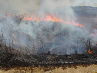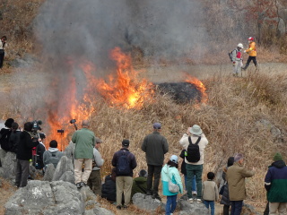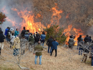 もの凄い迫力と速さで火が走って行きます。見る見るうちに火が移り、燃えた場所は黒くなっていきます。
