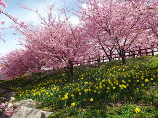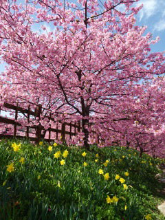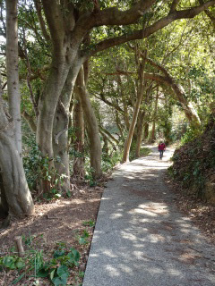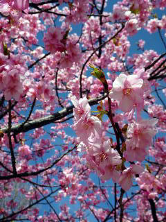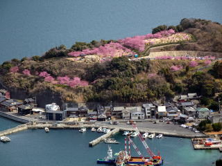 上関町城山歴史公園の河津桜が満開と知り行って来ました。10時過ぎに着いたのですが城山の駐車場は満車で上関中へ誘導されました。多くの人が城山へ向うなか、ザックを背負って上盛山へ向うのは気恥ずかしく早足で中学校を出ました。今日は河津桜のついでに上盛山まで登る車が多いので山道のピストンにしました。上盛山も大勢いの人が360度の展望を楽しんでおられました。城山歴史公園の河津桜は満開で正に見頃でした。