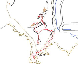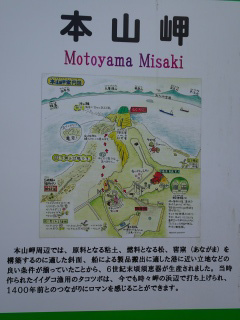 本山岬の先端には四等三角点(点名:本山岬)がある。
