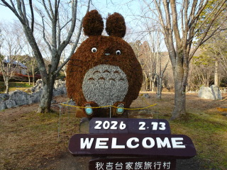 秋吉台家族旅行村の広い駐車場に駐める。以前は駐車代金を支払い駐めたが無料になったようだ。トトロの分岐を右に曲がると