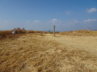 龍護峰の二等三角点(点名:秋吉台山)は埋まっていた。広い山頂でランチにする。生憎遠くの山は霞んでいる。龍護峰は秋吉台で