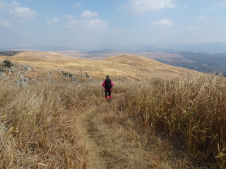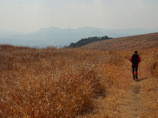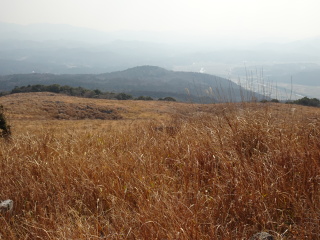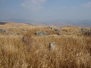 | 荒滝山や日の岳を眺めながら、南から東に向きを変えると再び秋吉台が見えてくる。 |