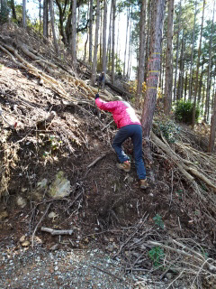山口市の山を忘年登山として山友さん達と登る予定にしていましたが、生憎の寒波で中止になりました。それならばと近場の弥ヶ迫山に登って来ました。弥ヶ迫山は石の口八幡宮の上の山です。初めは石城山の三鍛冶屋コースから取付きましたが、途中から道が無くなり大藪になったので引き返しました。次に石の口八幡宮参道入口から八幡宮にお詣りして、林道を登り尾根に上がるとすぐに弥ヶ迫山に着きました。山頂は期待していた展望はなく標識もありません。雑木藪の中、腰を降ろす所もないので早々に尾根道から下山して三本松山に向かいました。地図上は実線で書かれている道は潰れていました。藪漕ぎをして忘年登山を楽しみました。