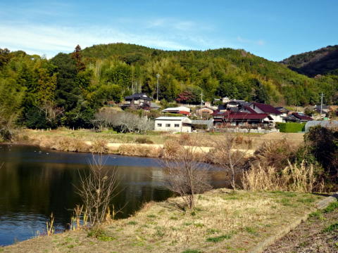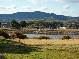 宿井の溜池から弥ヶ迫山を望む