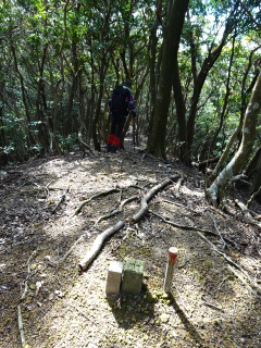 | 縦走路出合から激降りと、二ヶ所激登りがあり標高点381に着く。 |